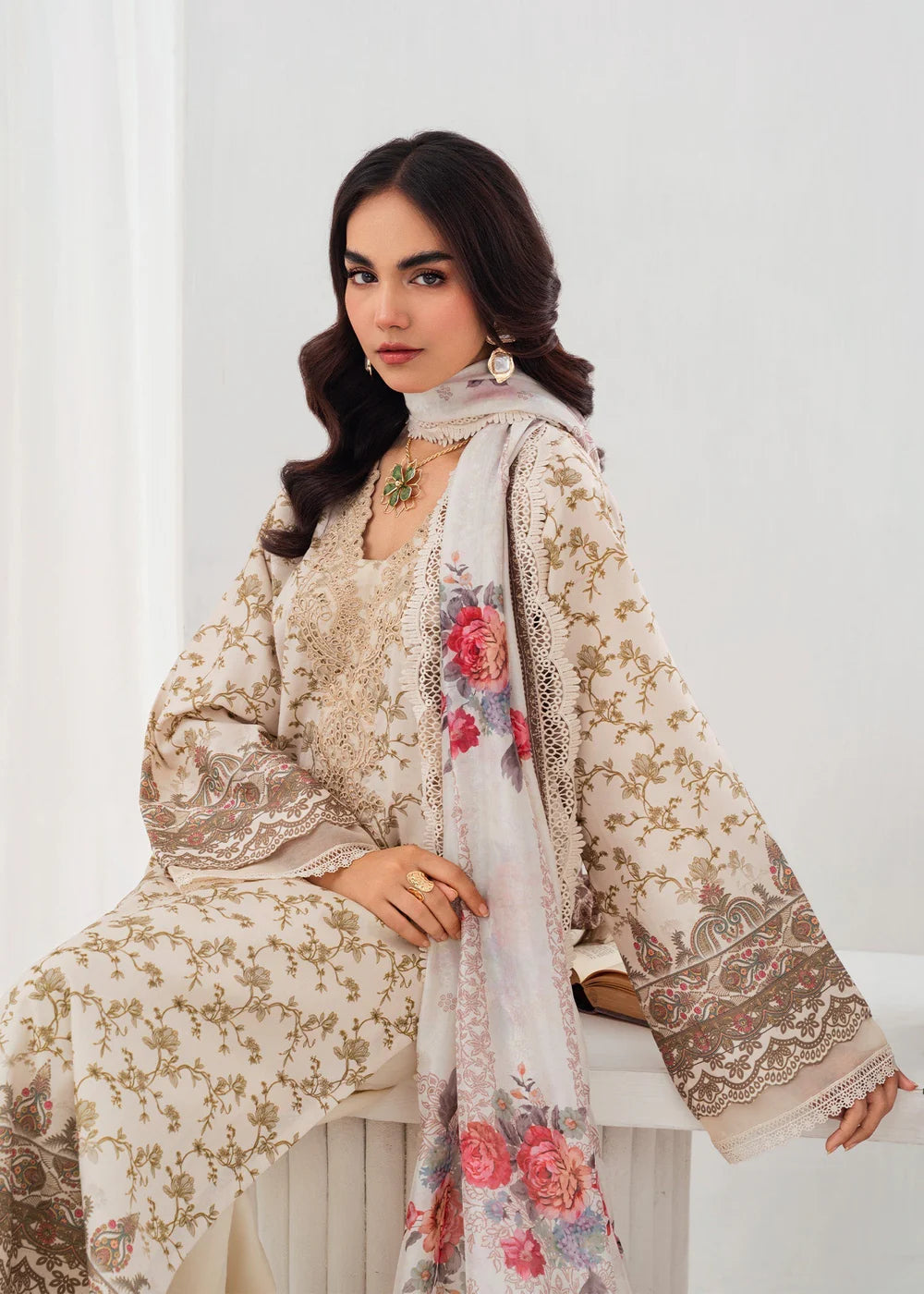 Swaya is the perfect harmony of soft tones and modern design — a graceful lawn ensemble adorned with delicate prints and subtle embroidery. Paired with a lightweight silk dupatta in warm, muted hues, it’s tailored for the woman who values contemporary elegance and effortless style. Shirt Fabric: Lawn Trouser Fabric: 100% Cotton Dupatta Fabric: silk Stitched Article: Ready to Wear Set: 3-Piece Set